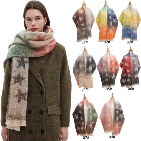 Écharpe colorée Ombre étoile de mode pour femmes Cachemire Feel Winter Warm Chunky Scarves