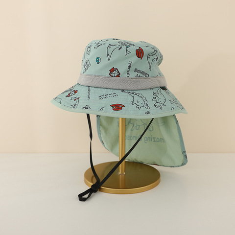 유아 아기 태양 모자 어린이 공룡 동물 인쇄 여름 UPF 50 + 소년 소녀 용 귀 덮개가있는 조정 가능한 비치 모자